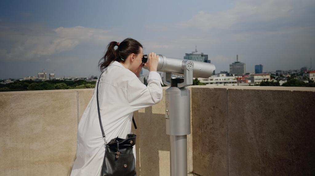 Marmor in warmen Tönen, metallische Details, ein Deckenbild voller Geschwindigkeit: Die Chrysler-Lobby feiert urbane Energie. Treten Sie hinein, atmen Sie kurz durch, und notieren Sie drei Details, die Sie begeistern. Teilen Sie Ihre Liste, wir sammeln Lieblingsfunde.